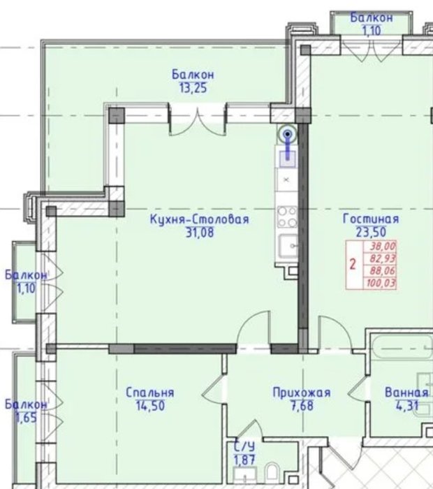 Квартиры в комплексе разнообразных планировок с просторными кухнями-столовыми, гардеробными, лоджиями и видовыми балкончиками от 56 до 132 м² с потолками высотой 3,2 м.