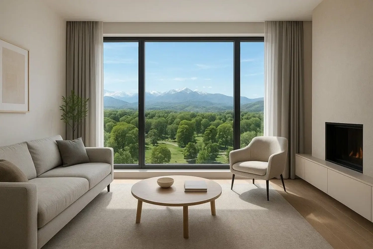 Расположение ЖК Виноград в стороне от шумного города позволяет наслаждаться живописными пейзажами гор, чистейшим воздухом и уединением, недалеко от Национального парка.