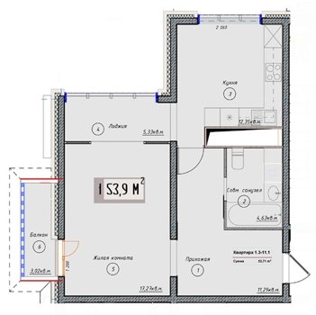 Площадь от 38.2 м2
