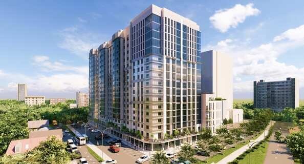 Оригинальная современная архитектура, сочетающая жилые помещения и коммерческие
