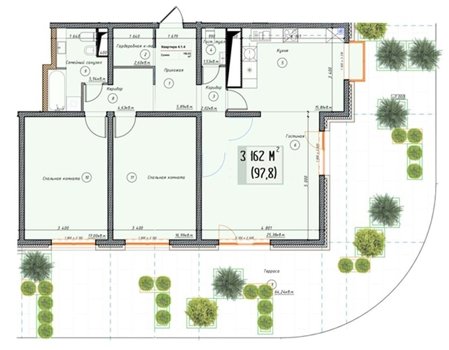 Площадь от 97.0 м2