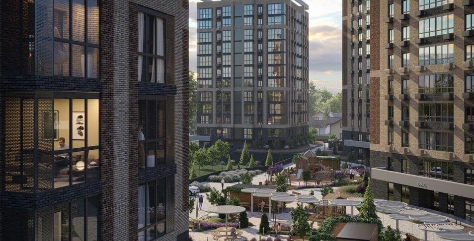 Баланс природы и города создает комфортную среду для жизни. Интересные решения оформления придомовой территории, зоны отдыха, детские и спортивные площадки с фокусом на эргономичности.